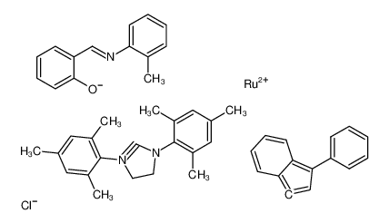 You are here: Home >Other Chemicals> Catalysts Agents > [1,3-Bis(2,4,6-trimethylphenyl)-2-imidazolidinylidene]-[2-[[(2-methylphenyl)imino ] methyl]phenolyl]-[3-phenyl-1H-inden-1-ylidene]ruthenium(II) chloride