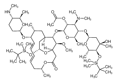 You are here: Home >Extracts> Reference Standards > 2’-O-Acetyl-4’’-O-tert-butyldimethylsilyl-4’’’-de-N-methylspiramycin I 3,18-(O-tert-Butyldimethylsilyl)acetal(5mg/vial)