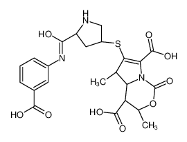 You are here: Home >Extracts> Reference Standards > (3S,4S,4aS,5R)-6-[[(3S,5S)-5-[[(3-Carboxyphenyl)amino]carbonyl]-3-pyrrolidinyl]thio]-3,4,4a,5-tetrahydro-3,5-dimethyl-1-oxo-1H-pyrrolo[1,2-c][1,3]oxazine-4,7-dicarboxylic Acid(2.5mg/vial)