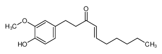 [6]-Shogaol is an aromatic constituent of ginger and the chain-dehydroxylated analog of [6]-Gingerol. [6]-Shogaol has activity very similar to [6]-Gingerol and produced an inhibition of spontaneous motor activity, antipyretic and analgesic effects, and prolonged hexobarbital-induced sleeping time. [6]-Shogaol also has potent antitussive activity and affected the cortical EEG.