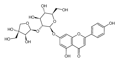 Synonyms: APIIN;APIOSIDE;APIGENIN-7-(2-O-APIOSYLGLUCOSIDE);APIGENIN-7-APIOGLUCOSIDE;APIGENIN-7-APIOSYLGLUCOSIDE;4H-1-BENZOPYRAN-4-ONE,7-[(2-O-D-APIO-BETA-D-FURANOSYL-BETA-D-GLUCOPYRANOSYL)OXY]-5-HYDROXY-2-(4-HYDROXYPHENYL)-;7-(2-APIOSYLGLUCOSYL)APIGENIN;7-[(2-O-D-apio-beta-D-furanosyl-beta-D-glucopyranosyl)oxy]-5-hydroxy-2-(4-hydroxyphenyl)-4H-1-benzopyran-4-one