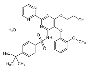 Synonyms: 4-(1,1-dimethylethyl)-n-(6-(2-hydroxyethoxy)-5-(2-methoxyphenoxy)(2,2'-bipyrimidin)-4-yl)benzenesulfonamide monohydrate;bosentan hydrate;Bosentan monohydrate;4-(1,1-Dimethylethyl)-N-(6-(2-hydroxyethoxy)-5-(2-methoxyphenoxy)(2,2'-bipyrimidin)-4-yl)benzenesulfonamide monohydrate;Bosetan