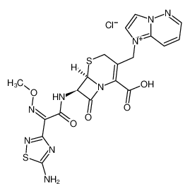 Synonyms (6R,7R)-7-[[(2E)-2-(5-Amino-1,2,4-thiadiazol-3-yl)-2-methoxyiminoacetyl]amino]-3-(imidazo[2,3-f]pyridazin-4-ium-1-ylmethyl)-8-oxo-5-thia-1-azabicyclo[4.2.0]oct-2-ene-2-carboxylic acid chloride