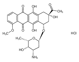 Synonyms (8S-cis)-8-Acetyl-10-((3-amino-2,3,6-trideoxy-alpha-L-lyxo-hexopyranosyl)oxy)-7,8,9,10-tetrahydro-6,8,11-trihydroxy-1-methoxy-5,12-naphthacenedione hydrochloride