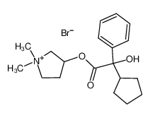 Glycopyrrolate is a medication of the muscarinic anticholinergic group. It does not cross the blood brain barrier and as such it has no to few central effects. It is a synthetic quaternary amine.