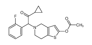 Synonyms: Prasugrel;2-[2-(Acetyloxy)-6,7-dihydrothieno[3,2-c]pyridin-5(4H)-yl]-1-cyclopropyl-2-(2-fluorophenyl)ethanone;Ethanone, 2-(2-(acetyloxy)-6,7-dihydrothieno(3,2-C)pyridin-5(4H)-yl)-1-cyclopropyl-2-(2-fluorophenyl)-;Ly 640315;Ly640315;Ly-640315;Unii-34K66tbt99;5-(2-cyclopropyl-1-(2-fluorophenyl)-2-oxoethyl)-4,5,6,7-tetrahydrothieno[3,2-c]pyridin-2-yl acetate