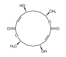 The macrolide dilactone Pyrenophorol was originally isolated from Byssochlamys niveah and Stemphylium radicinum. Pyrenophorol was moderately active against the fungus Microbotryum violaceum. It is an anti-fungal antibiotic produced by the plant pathogenic fungi Pyrenophora avenue and Stemphylium radicinum, which is closely related structurally to (-)-