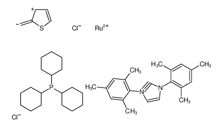 You are here: Home >Other Chemicals> Catalysts Agents > Tricyclohexylphosphine[1,3-bis(2,4,6-trimethylphenyl)imidazol-2-ylidene][2-thienylmethylene]ruthenium(II) dichloride,95%